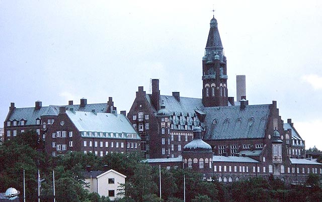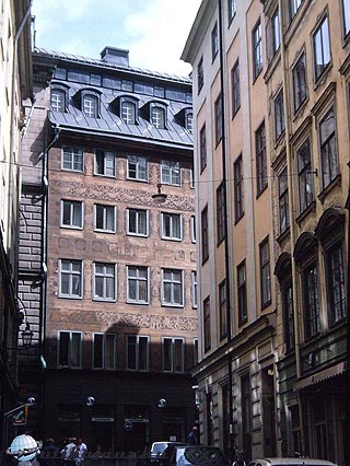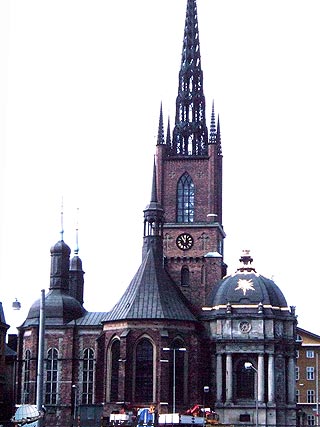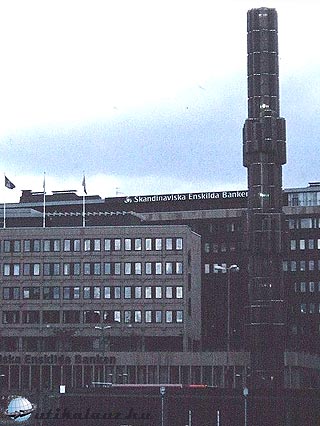 A másik irányba, a Riddarholm szigetre is elsétáltunk, a régi parlament épülete, a Lovagok háza és különösen a Riddarholm-templom nyűgözött le. Ebben a lovagrend tagjainak tábláin meglepetéssel fedeztük fel Csang-Kaj-Sek tábláját is – elég feltűnő volt a kínai jeles névleírás. A Klára-templom neogótikus épülete kevésbé hozott lázba, azonban elég jó orgonáján éppen játszottak, jólesett a forgatagban egy kis csöndesség, feltöltődés a további meneteléshez. A modern építészetből is kaptunk némi ízelítőt, a bevásárló utcán elmentünk egészen a Sergel téren álló, 37 m magas üvegtoronyig (jobbrol). Ezen a téren történt egyébként az Olof Palme-gyilkosság (a fiatalabbaknak: ő hivatalban levő miniszterelnök volt, amikor megölték), emlékhely is volt itt. Még a Központi pályaudvarra is elmentünk, a többszintes, óriási többcélú épületkomplexum jelentős méretű, de sok néznivalót azért nem tartogatott. Óhatatlanul összehasonlítottuk magunkban a két fővárost, bár nagyon különbözőek. Méretben is jelentős az eltérés, és míg Helsinki tiszta, élhető, kellemes, kisebb város, Stockholm világváros, annak minden fényével és hátrányával együtt.