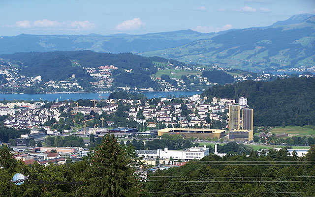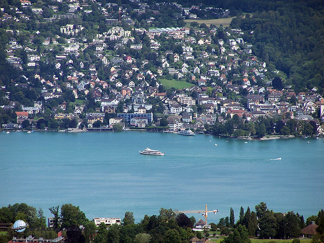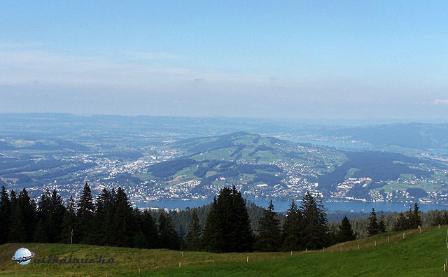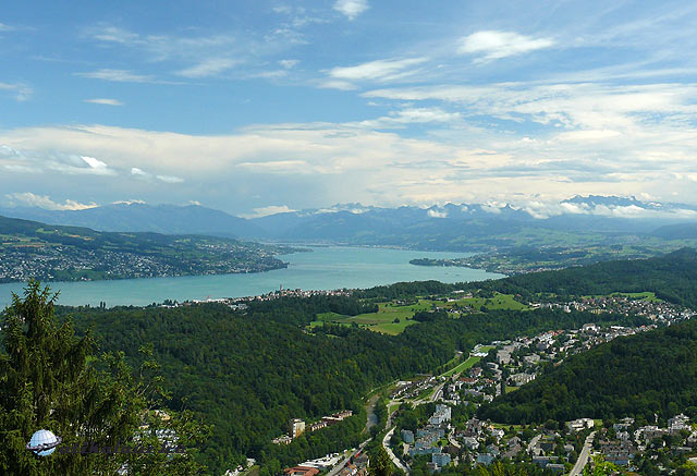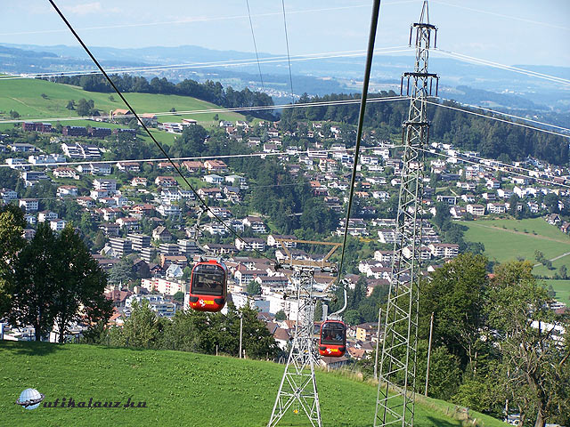 Ebéd után egy nagykabinos felvonóval Felseneggre mentünk. Innen csodálatos panoráma nyílt a városra és a Zürichi tóra.