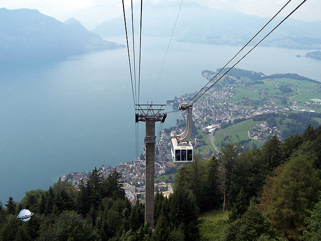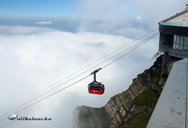 Ismét elég sokat kellett várni, hogy elindulhassunk lefelé Luzern irányába. A fényképen látható nagykabinos felvonóval indultunk Frakmünteggig.