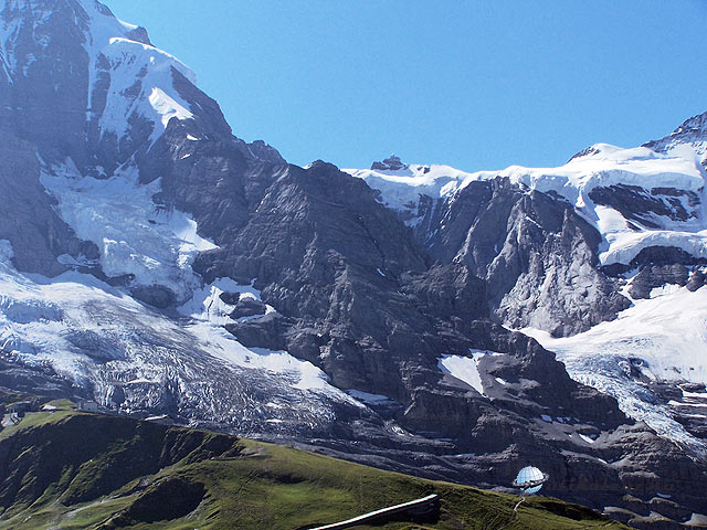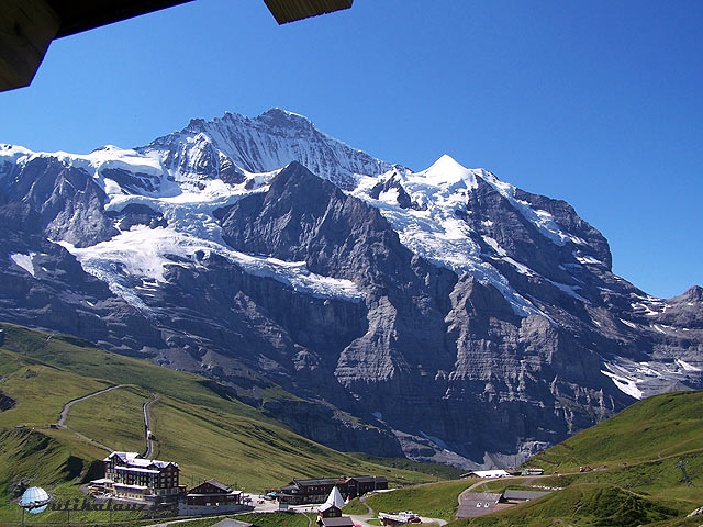 7. nap. Autóval mentünk Interlakenbe. Egy 80 perces vonatozással Lauterbrunnenen keresztül eljutottunk Kleine Scheideggbe, ami egy hágó az Eiger és a Lauberhorn hegyek között. A Jungfraujoch lábánál voltunk.
