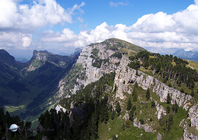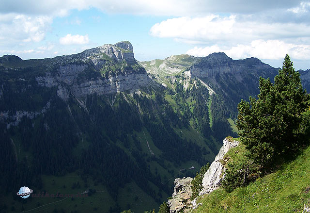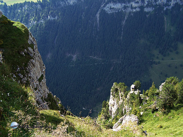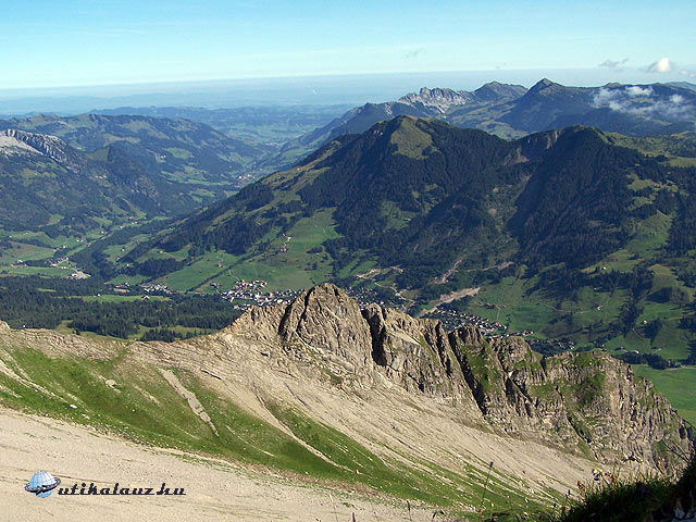 Innen átszállva kabinos felvonóra, az 1950 méter magas Niedernhornig mentünk fel. Itt nagyon szép kilátás nyílt a tóra, a környező hegyekre. Rövid túrázás során félelmetes mélységű szakadékokat, illetve meredek sziklafalakat csodálhattunk meg.