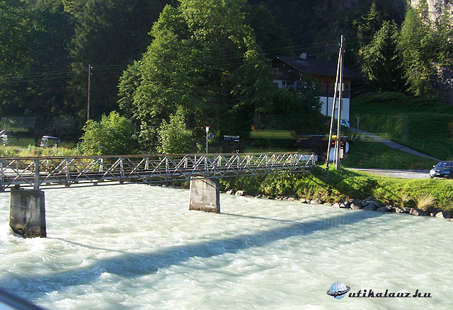 Rövid túrázás után egy másik útvonalon, Grindelwaldon keresztül mentünk vissza vonattal Interlakenbe. Nagyon szép, sziklákkal, hegyi patakokkal, hófödte hegycsúcsok látványával színezett volt az út mindkét irányban.