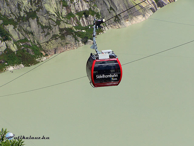 Itt található a Sidelhornbahn, egy kabinos kötélpálya. Az erőmű épületéből indul és a tavat övező egyik hegycsúcsra visz fel a víztározó fölött. Különlegessége, amivel még sehol nem találkoztunk, hogy mi magunk kezeljük. A megvásárolt jegy egy kódkártya, ezzel jutunk be a felvonóig. Ha nincs ott a kabin, mert fenn van a hegyi állomáson, akkor egy hívógombbal lehívhatjuk. Beszállva, a kabinban lévő irányító panellel indíthatjuk el. Innentől minden automatikus, az ajtó záródása, a kabin elindulása, megérkezéskor a nyitása. Félelmetes érzés a víztározó felett a nagy magasságban ezen a kis szerkezeten utazni, de igazán csodálatos látvány. A fényképen a víz fölött látható kis pont a kabin, talán érzékelhető a látványból amit előzőleg leírtam.