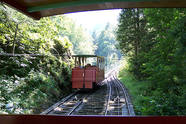 Egy rövid túrázás után a hegytetőről az ellentétes oldal felé indultunk le. Goldauba érkeztünk meg a másik végállomásra. Itt rövid sétával eljutottunk a pályaudvarra, s Luzernbe vonatoztunk, ahonnan tovább utaztunk egy panorámavonattal Meiringenig, majd vissza Giswilig.