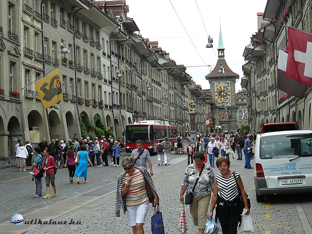 Bern egy hihetetlenül nyüzsgő város. Rengeteg ember az utcákon. A centrumban egyes helyeken nincs külön járda, teljesen egy szintben van az úttest, villamos- trolipálya, és a “járda”. Emberek mennek amerre akarnak, köztük jönnek-mennek a villamosok, trolik, autók… A buszok úgy „pittyegnek” előremenet is, mint nálunk, mikor tolatnak. Mindenki türelmes, senki nem mutogat, a hazai viszonyokhoz képest ez valami csoda!
