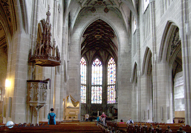 A Münster Székesegyház, ami egy csodálatos gótikus templom. A tornyát épp felújították, ezért oda nem mentünk fel. Elnézést, de olyan képet nem tudtam készíteni, amin az egész templom rajta van, mert egyszerűen nem fért bele a fényképezőgép látómezejébe.