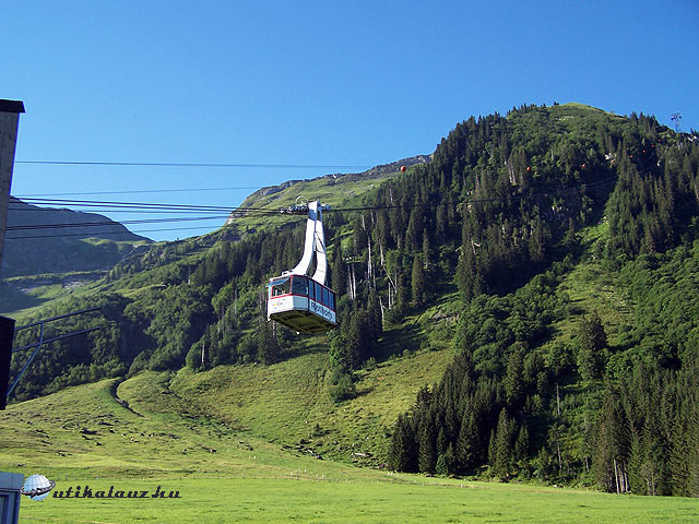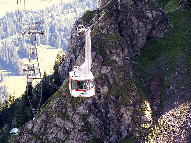 Rövid, 5 perces út után már kisebb kabinos felvonón folytathattuk utunkat lefelé. Ezeken a szakaszokon már napsütésben, tiszta időben csodálhattuk az alattunk elterülő panorámát. Ez az út 18 perces volt és Kriensig tartott, itt ért véget a kötélpálya.