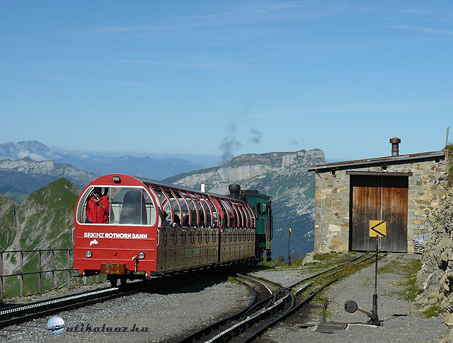5. nap. Reggel autóval mentünk Sörenbergbe. Csodálatos, nevéhez méltó volt a Panoráma út. 7-8 kilométeren 1200 méter volt a szintemelkedés. Szerpentin volt a javából. Egy nagykabinos felvonóval jutottunk fel a 2350 m magas Brienzer Rothorn hegyre. Teljes körpanorámát élvezhettünk.