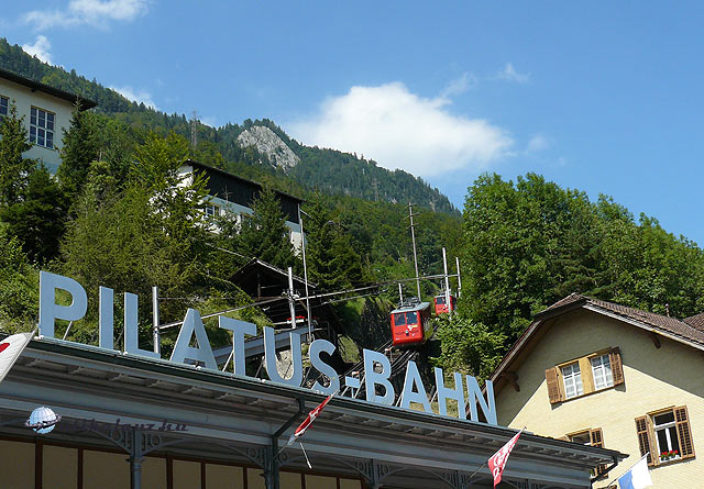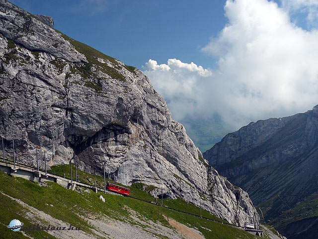 Alpnachstad volt a kiindulópont. a Pilatus Bahn volt az uticél. Kellemetlen meglepetés ért bennünket: másfél órával későbbi indulásra kaptunk csak jegyet, mint hogy odaértünk. Addig egy tóparti sétával, hattyúk etetésével ütöttük el az időt. A világ legmeredekebb fogaskerekű vasútjával jutottunk fel a Pilatus Kulm hegy csúcsára. A 30 perces út alatt leírhatatlan látványban volt részünk.