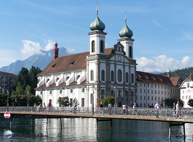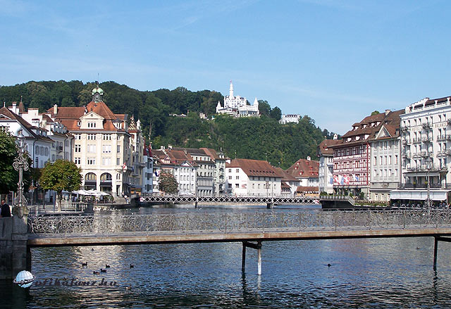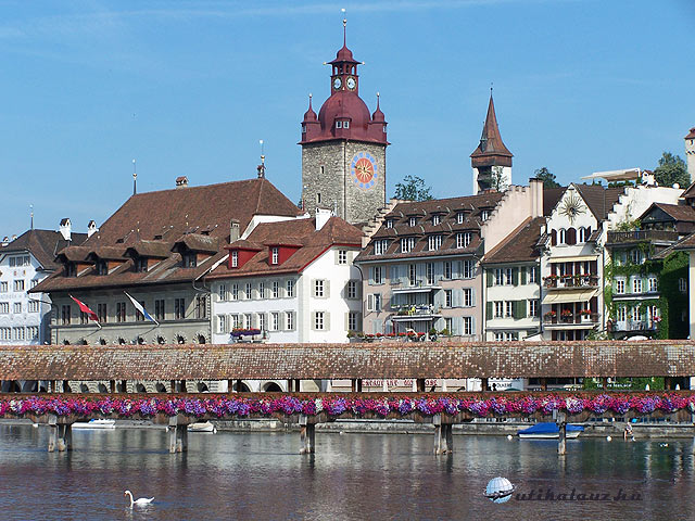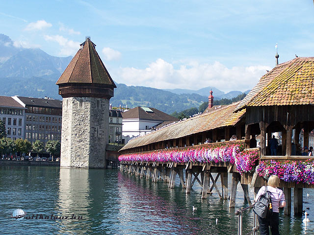 6. nap. Ismét „vonatos” napot tartottunk. Reggel indulás Luzernbe. A Rigi és a Pilatus hegy lábainál elterülő városban töltöttük a délelőttöt. A vizek, hidak, szállodák, templomok városa nagyon sok látnivalóval szolgált. Az Óváros, a Rathaus, a legendás fahidak: Kapellbrücke és Spreuerbrücke, illetve néhány templom: a Mattheuskirche, Horkirche, Jesuitenkirche megtekintése mind emlékezetes élmények maradnak. Az egész város olyan, mint egy ékszerdoboz.