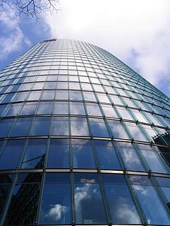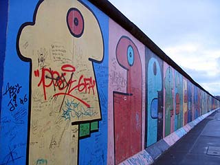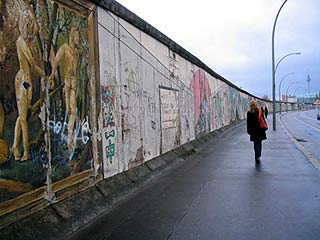 Kicsit csalódtunk, mert nem állt fal sehol, csupán egy kb. fél méter széles darab volt mutatóba. Gyorsan meg is néztük, hogy hol van hosszabb megmaradt falrész és nagy örömünkre megláttuk az East Side Gallery-t az útikönyvünkben. Ez a Mühlenstrassén található, S-Bahnnal a Hauptbahnhof megállótól közelíthető meg. De még mielőtt elindultunk volna körülnéztünk a Checkpoint Charlie környékén, nagyon izgalmas színes házak vannak a Schützenstrassén és itt van az ún. GSW Hochhaus, amit a Liza csak egy van sorozatból ismerhetünk. Az épület gyönyörű látványt nyújt, ablakain tükröződik az ég.