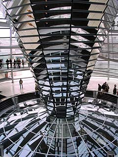 Rendkívül exkluzív üzletek is vannak egyébként pl. a Galeries Lafayette egy darabka Párizs Berlin szívében, ahol úgy viszik a méregdrága gucci, prada, givenchy, armani táskákat, mintha ingyen adnák. Amiért érdemes benézni, az az, hogy az áruház közepén egy hatalmas üvegkúp áll, amely visszatükrözi az üzletek belsejét. Berlinben még a bevásárlóközpontok is művésziek. Visszatérve az Unter Den Linden-re, ennek végén található a Pariser Platz a Branderburgi kapuval. Ettől újabb pár 100 méterre pedig a Reichstag, ami iszonyú sok vendéget vonz, mi többször be akartunk menni, végül csak harmadik alkalommal döntöttünk úgy, hogy most már kivárjuk a sort, bármi is történik. Számítani kell minimum 1 órás várakozásra, de a belépés ingyenes és annyira lenyűgöző a kupola, nem véletlenül vált Berlin szimbólumává. Osztogatnak sok nyelven tájékozatót, magyarul még sajnos nem, de érdemes azért kérni, van hozzá “kilátási útmutató” is, hogy milyen híres épületek láthatók a kupolából.