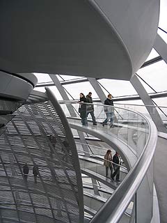 Ahogy a 20. század elején Párizs volt a modern művészet központja, érzésem szerint a 21. századi művészet, az új irányzatok Berlinben születnek. Csak látni kell a multikulturális város falfirkáit, vagy a foglalt házak rögtönzött magánkiállításait, vagy a Reichstag kupoláját, vagy a nemrég épült Potsdamer Platz ultramodern, monumentális high-tech épületeit, hogy megérezzék, mire gondolok. Berlinben valóban a hétköznapi élet része a művészet a kifestett berlini faltól kezdve a Ku’damm luxusszállodáinak a virágcsokráig, szalvétájáig. Látszik, hogy van pénz és igény is a műalkotások befogadására, hasznosítására. Berlin nagy pillanata a két városrész egyesítésekor 17 évvel ezelőtt kezdődött és ezt ki is használja a rendelkezésre álló társadalmi gazdagságra támaszkodva. Nem kétséges, hogy az új művészetnek, beleértve az építészetet is, itt kellett, ebben a pillanatban megszületnie. Wim Wenders angyala leszállt.