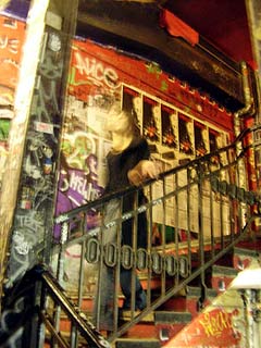 Ez Berlin legelső és legkommerszebb foglalt háza, szerintem kihagyhatatlan. Az Oranienburger Starsse-n található, egyébként ezen az utcán található Berlin éjszakai szórakozóhelyeinek jó része is. (Érdemes nem elfelejteni, hogy Berlinben a házszámok sokszor az egyik oldalon nőnek, majd “megfordulnak” és a másik oldalon folytatódnak – ez pl. az Oranienburger Strassén is így van.) A Tacheles államilag szponzorált művészeti központként működik, most is 4 kortárs kiállítást lehetett megnézni, de már maga a ház is egy alkotás, emellett 2 kocsma is található itt, ahol szinte mindenki alkoholmentes beck’s-et szürcsölget, így rendkívül szimpatikusak voltunk a pultos fiúnak, hogy mi egyszerűen 2 korsó csapolt sört kértünk. Egyből szóba is elegyedett velünk, elmondta, hogy ő is volt már Budapesten, be is rakott bizonyítékul a lejátszóba egy egész illés albumot és ezt hallgatta a bár rendkívül vegyes, főként turistákból álló vendégserege. Érdemes itt meginni valamit, közben a kényelmes kanapékról figyelhetjük a szomszéd ház falára vetített videó installációkat.