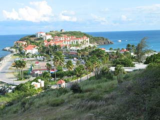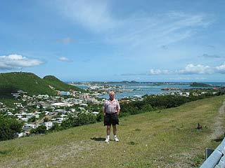 Elöször a fövárosba, Gustaviaba érkezünk ahonnan azonnal indult a szigetnézö buszunk. Ez a sziget is hegyes-völgyes, és a kilátás innen is nagyszerü minden irányban, és ahogy a helyi reklámok illetve szálloda árak hirdetik, bizony eléggé felkapott hely. Legolcsóbb szállókat sem hirdetnek napi $200 alatt a luxus szállodák pedig napi $600-nál kezdödnek, és szezonban állitólag jó elöre kell megrendelni öket. Különben a sziget eléggé nehezen közelithetö meg, röptere oly rövid hogy csak nagyon kis repülö lesszálására alkalmas, és talán ez is hozzájárul keresettségéhez. Ugy néz ki, hogy egy hely minnél drágább és minnél nehezebben hozzáférhetö, annál felkapottabb. Persze ez egy kicsit tulzás is, mert azért a legroszabb akarattal sem lehet a szigetre fogni, hogy nem szép. Sajnos azonban szigetnézés szinte fél óra alatt befelyezödött olyan kicsiny. Még nézelödtünk egyet, lesétálltunk a Shell beachre ahol bebizonyosodott hogy a sziget francia behatás alatt van, mivel a hölgyek felsörész nélkül napoztak böszen.