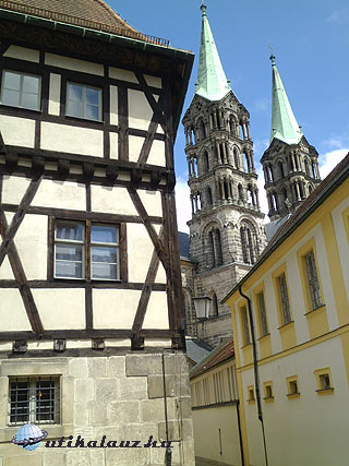 Mire végigjártuk a termeket (legalább 2 óra), a nap is kisütött, így érkeztünk meg Bamberg városába. Óriási nyüzsgés fogadott minket, a világ minden részéből származó turisták hada hömpölygött az óvárosi utcákon. Ennek ellenére viszonylag jó helyen sikerült parkolni. Ami Prágának Károly-híd, az Bambergnek a folyó közepére épült városháza. Hídján állandóan nagy a tömeg, persze köztük mi is. A folyóra épült városháza igazi különlegesség. Azért építették ide, hogy a polgárváros , és a papi városrész közt ne legyen vita. Az egész óváros a világörökség része. A legértékesebb és leghíresebb műemlék azonban a négytornyú román kori dóm. Kívülről is impozáns látvány, de belülről valami fenséges. Itt látható a híres „Bambergi lovas”. Ez a szobor a feltevések szerint Szent István királyunkat ábrázolja, akit valószínűleg itt kereszteltek meg, mikor leánynézőbe jött Bajorországba. Itt temették el II. Henrik császárt és feleségét is. Márványszarkofágját szép domborművek díszítik, melyek a császár életének epizódjait ábrázolják. Miután alaposan megnéztünk mindent, barangoltunk még egy kicsit az óvárosban, majd búcsút intettünk Bambergnek.