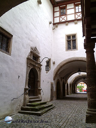 A kolostor román kerengője világhírű. Szerettük volna megnézni, de épp nem volt látogatható. Így csak a templomot néztük meg, és a városban tettünk egy rövid sétát. A város egyébként nem túl nagy durranás. A hazafelé vezető úton még útbaesett Schillingfürst, mely a barokk kastélyáról nevezetes. Már zárva volt ugyan, de gondoltuk, legalább kívülről megnézzük. Nem lett belőle semmi, mert mire Schillingfürstbe értünk, akkora záport kaptunk, hogy nem bírtunk kiszállni az autóból, így aztán kihagytuk.