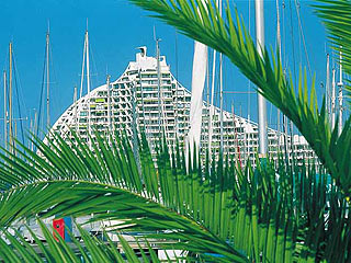 La Grande Motte futurista építészeti stílusú fürdőhely, ahol finom egyensúlyban van a modern építészet a tágas zöld terekkel. La Grande Motte a víz, a homok és a lagúnák által képzett pusztaságban épült, rengeteg szabadidős tevékenységet és szórakozást kínál (golf, vízi sportok…) a tengerpart legzöldebb környzetében..