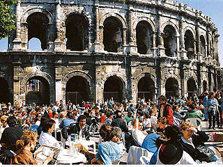 , mely nagyon gazdag ókori és középkori emlékekben. Közülük is kiemelkedik Nimes, ami Augustus császár uralkodása alatt Lyonnal és Narbonne-nal egyetemben az egyik legfontosabb város volt a római kori Galliában. A rómaiak i.e. 120-ban foglalták el, 1229-ben a Toulouse-i hercegek kezébe kerül, majd a Francia Királysághoz csatolják. Ókori műemlékei, római arénái, a Magne-torony, Diana temploma, a gall-római szentély maradványai és a XVIII. századi szökőkutakkal díszített parkja révén Nîmes a “7 domb városa” elnevezést kapta. Languedoc-Roussillon történelmi örökségekben leggazdagabb városa. Középkori, ugyanakkor mai város, amely olyan kortárs építészek alkotásainak ad helyet, mint Norman Foster (Carré d’Art), Jean Nouvel, Philippe Stark.