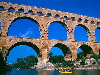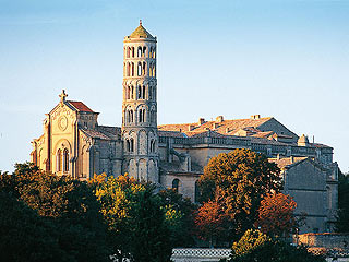 A Pont du Gard-tól (felső képek) néhány lépésre található Uzes városa, Franciaország első hercegsége, amelynek báját a hercegi várkastély köré épült utcák és sikátorok adják (XI. és XVIII.század). Fölöttük magasodnak a hercegség idején épült középkori tornyok, közülük leghíresebb a a XII. században épült Fenestrelle – alsó, baloldali kép -, amelyet az itáliai harangtornyok közé sorolnak építészetileg – és az egykori városháza tornyai. Ez a püspök-, konzul- és hercegváros a fénykorát a XVIII. században élte, de tündöklése még ma is tart gazdag építészeti öröksége révén.