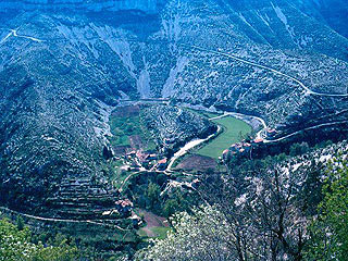 Sainte Enimie mezővárosa a Tarn legmélyebb hegyszorosának legkeskenyebb átjárójában található. A meredek lejtőkről jól kivehetők a támfalak és a teraszok, amelyek széles lépcsőként tartanak felfele. Kavicsos utcáival és középkori méreteivel Sainte Enimie Franciaország egyik legszebb falva.