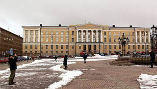 Több mint százötven évesek a templomot körülölelő Szenátus tér házai is, köztük az egyetemi könyvtár, az egyetem, és a kormányzati palota. Ahogy Pesten, itt is a klasszicista stílus, a szecesszió a meghatározó, de az északi ember mentalitásának köszönhetően egy kevésbé cikornyás, mondhatnánk, kicsit hidegebb változat.Teljesen elüt a környezetétől a több mint száz éves orosz uralom egyik emléke az 1868-ban vöröskőből épített Uszpenszkij székesegyház, amely a legnagyobb görög-keleti templom Európa keresztény részén. Nem messze tőle, a tengerparti forgalmas piactér sarkán áll a köztársasági elnök palotája. A szinte jelentéktelen háromszintes épület különleges funkcióját csak a kapunál álló őr jelzi.