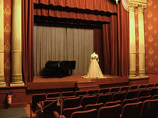 A kastély saját színházában jártunk, amikor csatlakozott hozzánk a ház úrnője is, aki nagyon kíváncsi volt a magyar látogatókra.