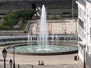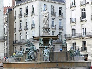 A színháztól kicsit visszasétáltunk a Crebillon utcán, átmentünk az éppen felújítás alatt lévő Place Royale-on, melynek épületei háromnegyed részben megsemmisültek egy 1943-as bombázás során. A házakat és a tér közepén álló hatalmas kék gránitszökőkutat újjáépítették. Az 1865-ben készített szökőkút a város egyik jelképe. Az allegorikus jelenetben egy megkoronázott női alak ügyel a Loire-ra és a mellékfolyóira.