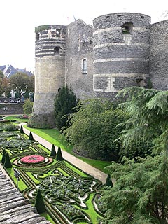 A történelmi emlékekkel ismerkedő turistáknak az Anjou-k erejét, gazdagságát a környéken számos kastély és más építmény mutatja ma is. Közülük is talán a legérdekesebb az Angers közepén, a Maine mellett álló 800 éves erődítmény, ahol mi is kezdtük sétánkat. Az ötszög alakú vár mintegy 1 kilométer hosszúságú falát 17 szabályos hengerszerű bástyatorony tagolja. III. Henrik parancsára a tornyok tetejéből jelentős részt lerombolta, de a legmagasabb közülük még úgy is eléri az 50 métert. Még érdekesebbé teszi a látványt, hogy építőanyagként vegyesen használták a sötét árnyalatú palát a környék jellegzetes fehér köveivel.