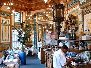 A tér színházzal szembeni félköríves oldalán nyílik a Cambronne park, ami zöld lombjaival kicsit oldja a tér szürkéit. A tér keleti szélén bementünk a Cigale nevű szecessziós étterembe. Ha minden jól megy, tücsök vagy kabóca a jelentése – legalábbis ez az állat található a logojában. Olyasmi, mint a mi szecessziós cifrapalotáink. 1895-ben készítette egy keramikus építész. A termek falait váltakozva kerámia és gobelin borítja, díszíti.