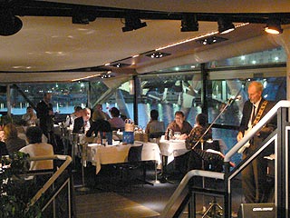 A hajón zenekar játszott a vacsora utáni tánchoz. A házi fotós buzgón fényképezett, de szerencsére nem volt túlságosan tolakodó. Az első hídig mentünk el, ahol egy ekkora járgánnyal már vissza kellett fordulni. A kiszállásra persze elkészültek a fotók is, már annak, aki rendelt és fizetett.