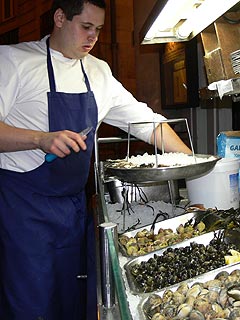 A kezdetektől nagyon kedvelt szórakozóhely volt – bizonyára azért is, mert sok nő várta ide a szórakozni vágyó férfiakat. A helyiek állítólag nantes-i tyúkoknak (kokott) hívták őket. Most csak körülnéztünk, de este itt volt a vacsoránk. (A nőkkel sajna nem találkoztunk.:) Az óceán közelsége miatt, meg egyébként is, talán nem meglepő, hogy az étterem fő specialitása a hal, meg mindenféle tengeriherkentyű, ahogy a képekből is kiderül.