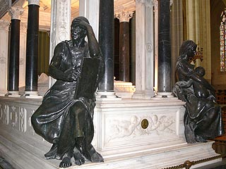 A kapukat és a belső részeket díszítő szobrok, faragások mellett a templom kiemelkedő szépségű darabja az építtető Anna apjának, II. Ferencnek és feleségének síremléke. A hercegi párt és a különböző alakokat ábrázoló szarkofág a 16. század első éveiben készült. Az egyik érdekes alak egyik oldalával öregemberként, a másikon fiatal nőként néz ránk. A síremléket a francia reneszánsz egyik legnagyobb szobrásza, Michel Colombe készítette.
