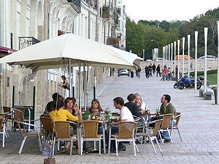 A folyóparton futó utcában vendéglők, kocsmák, turistákra építő boltok váltogatják egymást. Ahogy később a város más részein