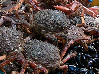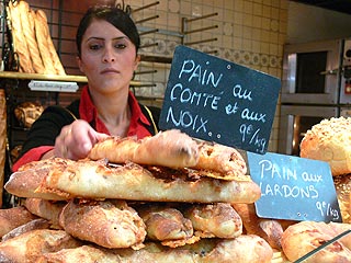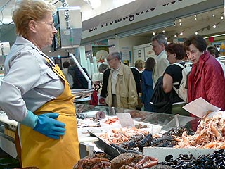 A vásárcsarnokban (marché) a szokásos kínálat: zöldség, gyümölcs, tejtermék, húskészítmények és persze hal, halféle minden mennyiségben. Az épület megjelenése kicsit komolytalannak tűnt a város más részeihez képest, de a kínálat gazdagnak tűnt. Itt láttam először lila karfiolt, no meg a sajt- és halválaszték is nagyobb volt a veszpréminél. Helyi kalauzaink szerint a környék fő terméke a madársaláta, vagy más néven galambbegysaláta – valeriana locusta. A francia fogyasztás 80 százaléka állítólag innen kerül az országba, de erősek póréhagymában is.