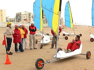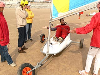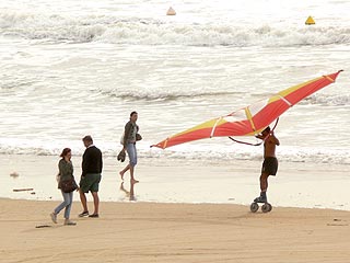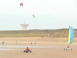 a Balatonnál ezt már viharosnak mondanám). Én a többiekkel a homokvitorlázással ismerkedtem a sima plázson. Ezen a környéken a legkeskenyebb helyen is legalább 50-100 méteres szabad sáv volt a víz és a lelátóként kialakított partvédőmű között, így bőven volt hely mindenre.