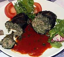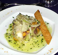 A hozzáértők szerint a csúcsok-csúcsa a Szent Jakab kagyló volt keserű hagymával, édesköménnyel. Nekem ehhez még kicsit csiszolódni kell. A paprika helyett spenótlevelekbe töltött húsos, rizses gombócok paradicsomos szósszal már egészen magyarosnak tűntek.