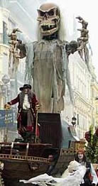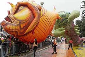 A makettek mellett tengeri állatokat, sárkányokat és más szörnyetegeket formázó hatalmas léggömbök riogatták a közönséget. Némelyiket négy-öt ember alig bírta megtartani, irányítani.