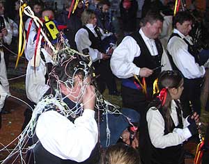 A felvonulásokat közel akkora hangzavar kíséri, mint a Budapest parádét (no, ez persze túlzás, de nekem sok volt a hangerőből és az 50 méterenként egymást követő zenék változatosságából. Az afrikai tam-tam doboktól a román tangóharmonikán, a német rezesen és a skót dudásokon át a Zhorn csoport üvöltő technojáig minden megszólalt. Úgy tűnik, ez utóbbi nemcsak nálam vágta ki a biztosítékot, a szervezők is megelégelhették a ricsajt, mert állítólag az idén az egymást kioltó zenék helyett valami egységesebb hangzást adnak a karneválnak.