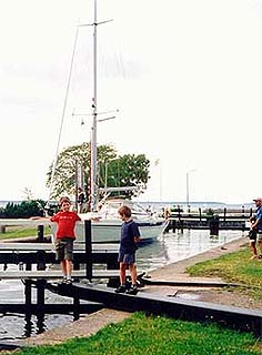 Most már végleg elindultunk utunk végcélja Stockholm felé. Először az útikönyv és prospektusok által reklámozott és olyan jól hangzó Töreboda-ban álltunk meg. Közvetlenül az állomás mellett, ahol vitorlás hajók árbocai mutatták, hogy ott van a csatorna. Aztán más semmi, egy vasárnapi álmát alvó kisváros. Szürke és unalmas.