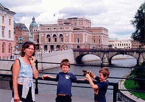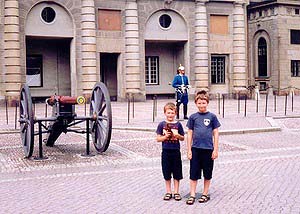 A Királyi Palota közelében kezdtük a városnézést. Miután megláttuk a belépők árait lemondottunk a palota megtekintéséről. Végig sétáltunk a Stockholm vásárló utcáján. Rögtön a séta elején láttuk a Dán nagykövetség épületét, ahol valódi legó város volt a kirakatban. Bementünk a nagyáruházba és vettünk 2 iskolatáskát a fiuknak, hogy valami emlék is maradjon Svédországból is. Végül találtunk egy játszóteret, ami nagy élmény volt a mászókáival, rollerjeivel. Innen elég nehéz volt visszamenni a Campingbe.