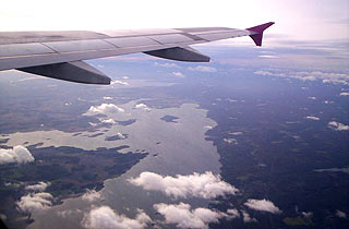 pillanata kárpótolt a késésért, ami ekkor már nem is tűnt olyan soknak. A két órás út alatt elrepültünk a Tátra felett, majd Lengyelországon keresztül kiértünk a Balti tengerre. Sajnos nem mindig láttunk le a felhőktől, de felettük az egész horizont belátható volt. Elértük a Skandináv-félsziget peremét, itt elkezdtünk süllyedni, és csodálatos látvány tárult elénk. A rengeteg apró sziget, és a fjordok által szabdalt zöld erdősségek térképként jelentek meg a szemünk előtt.