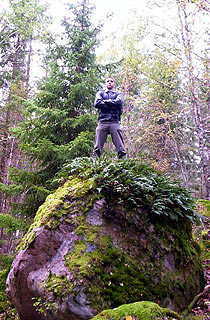 Rengeteg zuzmó és moha telepedett meg a sziklákon, igazi északi hangulatot ad. Megismerkedtünk a sziklás, zuzmós, fenyves igazi skandináv erdők varázsával. Sok helyen olyan, mint a mesebeli erdők a könyvekben. A fű, ahol van, pázsitszerű, élénkzöld, pedig sohasem locsolják. Igaz itt normál esetben minden másnap esik, de úgy néz ki, direkt a mi tiszteletünkre, az eső mostanában mindennapos vendég, szerencsére csak éjszaka. Sajnos a fotózáshoz már kezdett sötétedni. Vissza is tértünk a repülőtérre, ahol megpróbáltunk információt szerezni a buszindulásról.