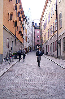 A boltok tömkelege mellett továbbsétálva megálltunk egy édességboltban, vettünk néhány tábla svéd csokit otthonra ajándékba. Aztán nem mindennapi látványban volt részünk. Az utcán volt egy egészen különleges utcai zenész. Az egyik kezében rádiót tartott a füléhez, a másik kezével szájharmonikázott, gondolom a rádióban hallott dallamot akarta előadni, de én ilyen összevissza hangzavart hangszerből még nem hallottam. Persze ehhez nem akármilyen tánclépéseket, forgásokat mutatott be. Meglepődöttségemben röhögni is elfelejtettem.