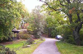 Az épület mögött egy temetőt jelöl a térkép. Kellő tisztelettel közelítettük meg a sírokat, és nem csalódtunk. A gyönyörű pázsit és hatalmas tölgyfák között egy viking emlékmű és sok egyszerű, de szépen rendben tartott svéd sír állt. Az évszámokból rájöttünk, hogy nem eredeti viking sírok, hanem hasonló stílusú újabb sírkövek. A kelta kereszt és a vikinghajós kövek régi legendákat idéző stílusban állnak. A közelben egy kisebb kikötő is van. Itt található nem messze a Skanzen, ami a régi svéd hagyományokat, életmódot, az őshonos állatokat mutatja be. Sajnos busás a belépő, és időnk sem nagyon lett volna rá, ezért inkább a mellette levő Biológia Múzeumot néztük meg.