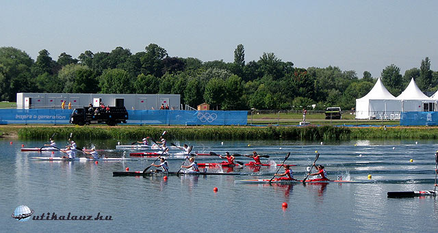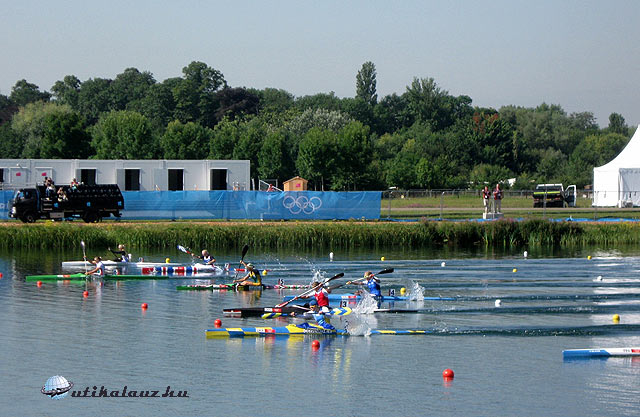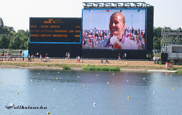 A döntők kezdete előtt a 10. sorba szóló belépőjegyemet a helyszínen a “ticketshop-ban” elcseréltettem 1. sorba szólóra, hogy az olimpia kajak-kenu döntőit igazán testközelből élvezhessem. A nap során egymást érték a MAGYAR szempontból örömteli események. Első sikerünket a férfi kajak négyes ezüstérme jelentette. Együttesünk nagy csatában az ausztrálok mögött végzett a 2. helyen. A dobogóra álló vidám tekintetű srácok számára aranyként csillogott az ezüstérem. A női kajak egyes Kozák Danuta csodálatos versenyét hozta. Legjobb formában lévő kajakosnőnk erejét nagyszerűen beosztva, tökéletes technikával iskolázta le a többi nemzet versenyzőnőit. Amikor az előttem lévő pályaszakaszon elhaladt a mezőny, még csak néhány cm-rel vezetett Danuta az ukrán vetélytársa előtt. Szerencsére ezt az előnyt a célig többszörösére tudta növelni. Bebizonyította, hogy az 500 m-es klasszikus számban nincs nála gyorsabb nő a Földön. Olimpiai bajnokként “mázsás terhek” alól szabadult fel, és élvezhette a magyarok teli torokból szóló – “Szép volt Dana!” – köszöntését.A piros-fehér-zöld zászlók irányából zengett a “Ria, ria, Hungária!” Önkívületben integetett, mosolyogott minden magyar a lelátókon. Legnagyobb számban jelenlévő szurkolócsapat tagjaként átéreztem, hogy mennyivel többet jelent a helyszínen végigélvezni egy ilyen világra szóló sikert. Újabb álmom teljesült, hogy testközelből láttam egy magyar olimpiai bajnoki cím születését.