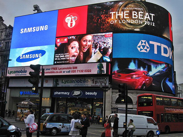 Piccadilly Circus: London közepének számít, ez a legnagyobb metrómegálló is. Tér közepén a szerelem istenének /Erosznak/ a szobrával díszített kút áll 1893 óta. Nem messze van a Trocadero (modern bevásárló- és szórakoztatóközpont).