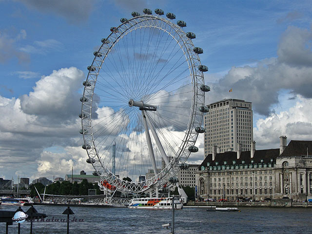 London Eye: felállításában legfőbb szerepet a British Airways vállalta. Lassan körbeforgó üvegkupolákból gyönyörű kilátás esik a városra.