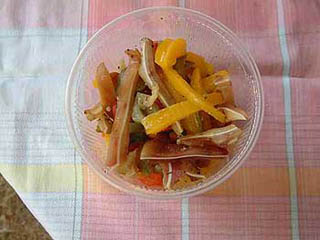 Egy nagy áruházban meleg készételeket is lehetett venni, így kipróbáltuk a “cepelinai”-t, a hatalmas burgonya-gombócot fasírozott jellegű töltelékkel, többféle választható szósszal leöntve, a székelykáposzta jellegű, – de a savanyításban különböző – káposztás ételt virsli darabokkal, a céklasalátát és a céklalevest, kétféle húsgombóccal töltött tésztát, de volt olyan töltött valami, amit többször körbe kellett adni, mire elfogyott.
