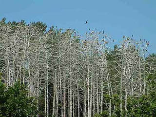 Az útszélen jelzőtábla mutatta a gyalogutat a kormoránok fészkelő helyének megleséséhez. (Tilos minden és tessék csendben maradni tábla).